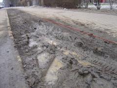 Teraz samochody nawożą rozwodnionym kompostem oba ciągi, chodnik płynnie przechodzi w błotnistą bryję.
